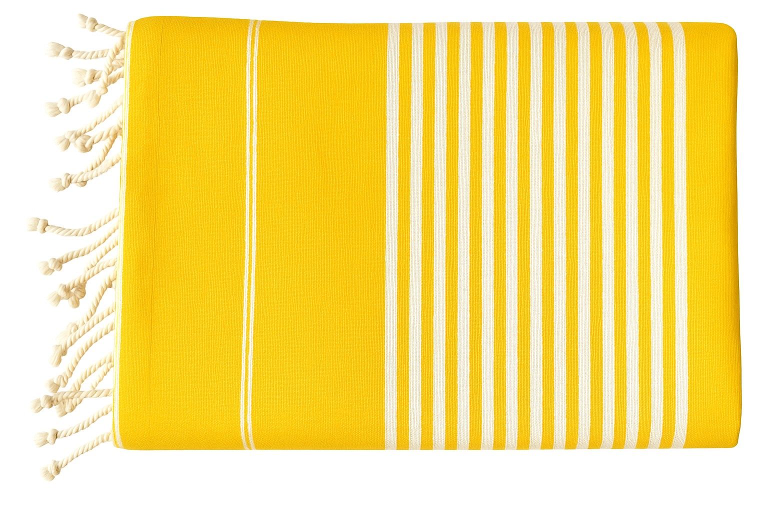 Découvrez l'élégance et la praticité de la "Fouta grande taille jaune Soleil de Sable" de Le Comptoir de la Plage, un accessoire incontournable pour vos moments de détente.