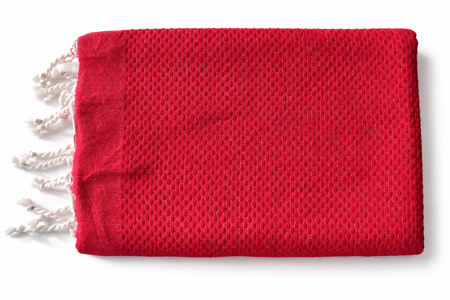 Avec son format de 100 x 200 cm, cette fouta couvre aisément un transat, une table de massage ou un lit simple. Le tissage en nid d’abeille améliore l’absorption tout en gardant un poids contenu de 400 g, ce qui limite le volume dans un sac de plage ou un bagage cabine. Le coton à 190 g/m² trouve un équilibre entre souplesse et tenue, pratique pour s’en servir comme paréo ou drap de bain. La fabrication en Tunisie et la finition des franges à la main s’inscrivent dans une logique de soutien à l’artisanat local. La couleur rouge, associée au relief du nid d’abeille, modernise les espaces de bain sans multiplier les accessoires. Pour le SEO, il s’agit également d’une fouta en tissu nid d'abeille adaptée à un usage intensif.