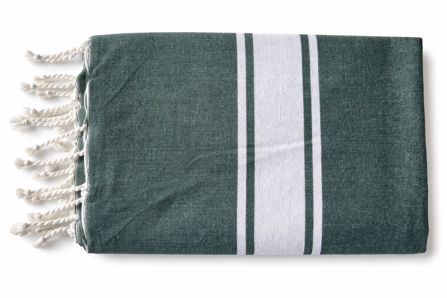 Cette fouta plate en coton présente un tissage traditionnel tunisien dans une teinte verte éclatante, rehaussée de bandes blanches contrastées. Fabriquée selon les méthodes artisanales ancestrales, elle associe fonctionnalité et esthétique méditerranéenne.
