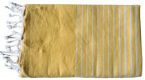 Réf. : 10152-32C Fouta de Tunisie 100% coton, celui est rayée jaune et blanc. La fouta est légère et beaucoup moins encombrante qu'une serviette de plage. De grande taille (100cm X 200cm) elle sera idéal pour la plage.