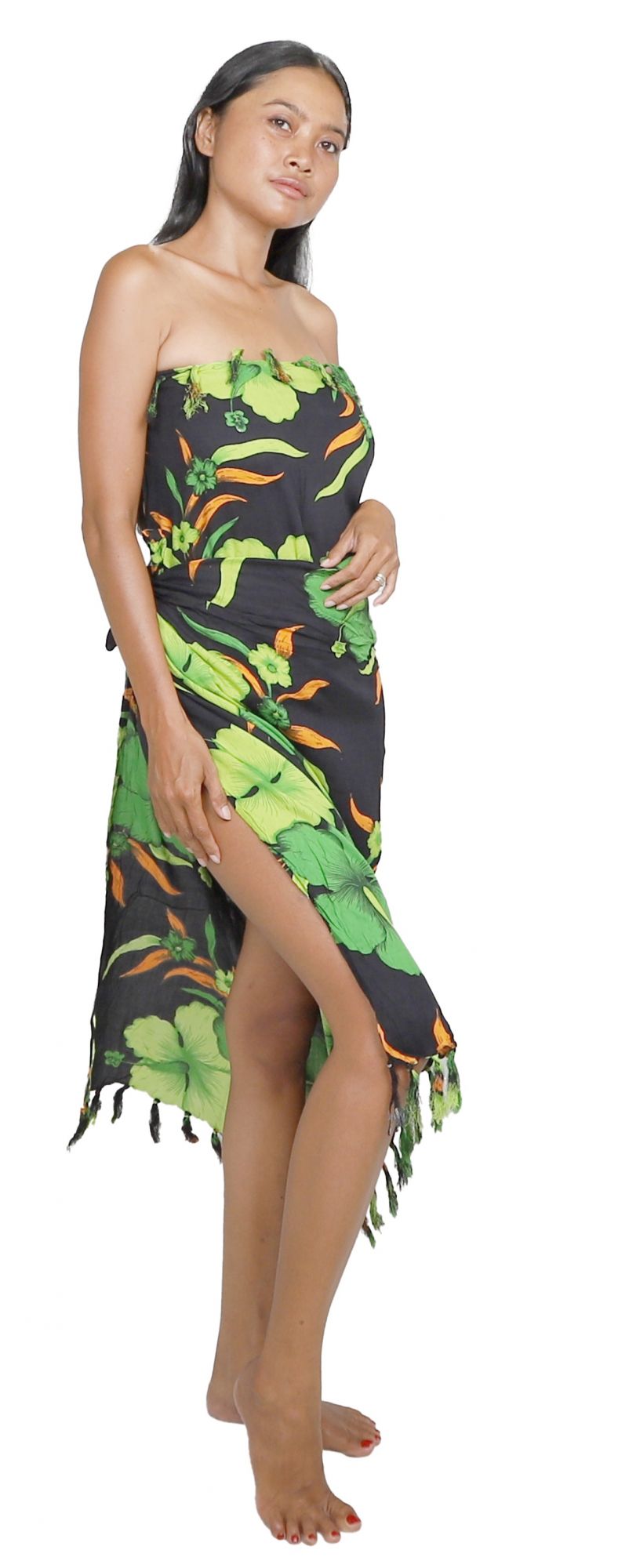 Ce paréo fleuri vert et noir élégant transforme vos sorties balnéaires en moments de style décontracté. Fabriqué à Bali selon les traditions artisanales locales, il marie praticité et esthétisme dans un format généreux.
