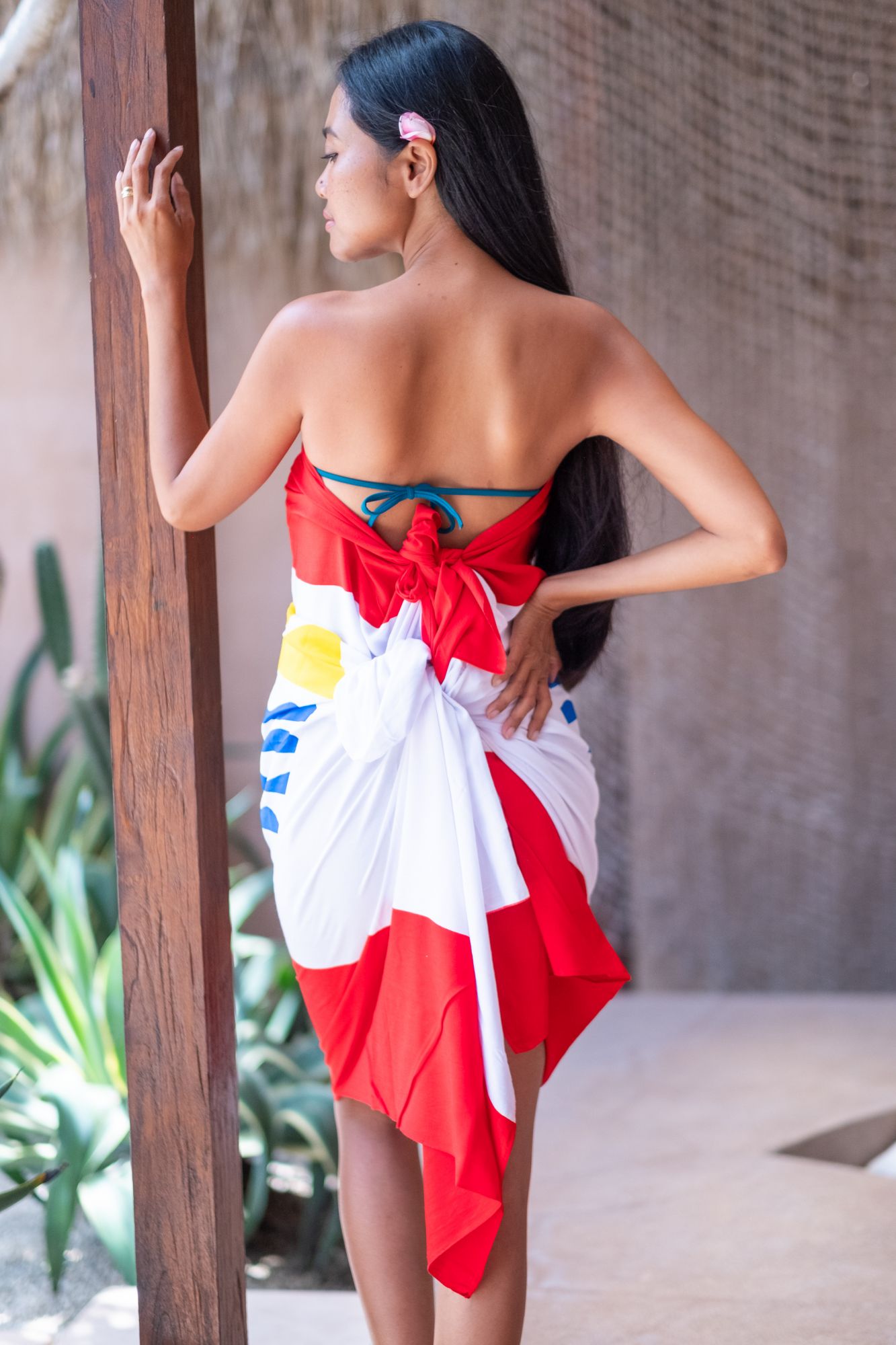 Intéressé par ce magnifique paréo drapeau polynésien? Rendez-vous sur notre site pour en apprendre plus et découvrir notre collection dédiée à la culture polynésienne. Offrez-vous une touche d'exotisme et de raffinement.