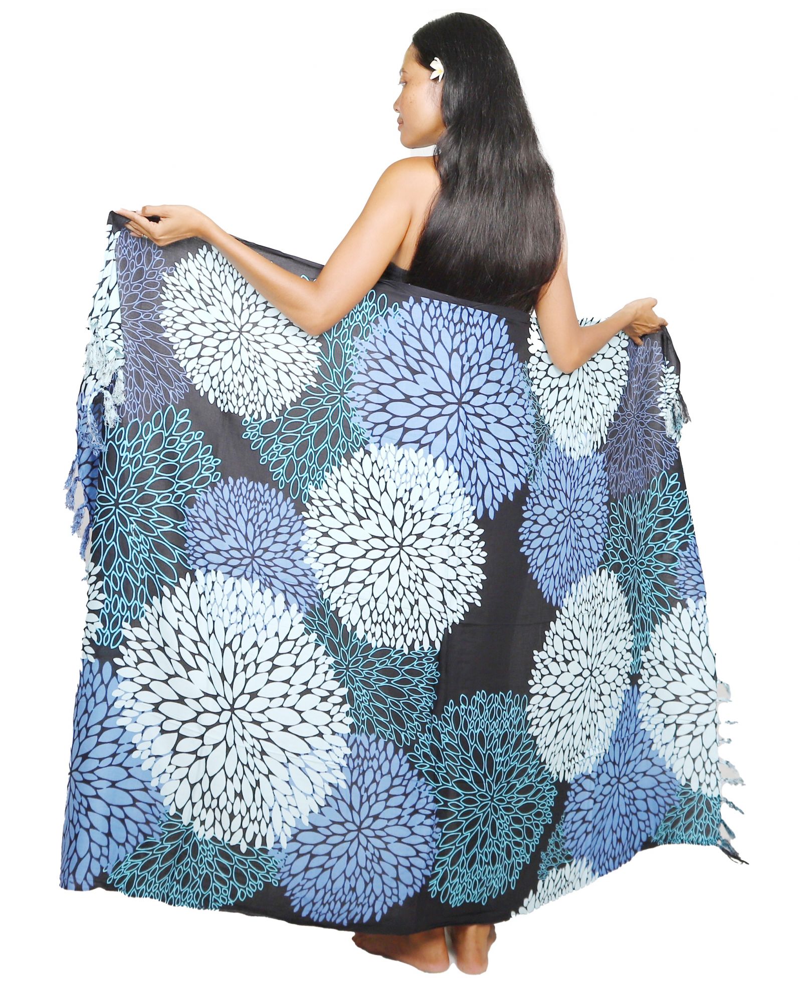 Ce paréo mandala bleu pour la plage transforme votre garde-robe estivale en offrant de multiples possibilités de port. Confectionné à Bali selon les traditions artisanales locales, il arbore des motifs floraux aux rosaces délicates sur fond noir.