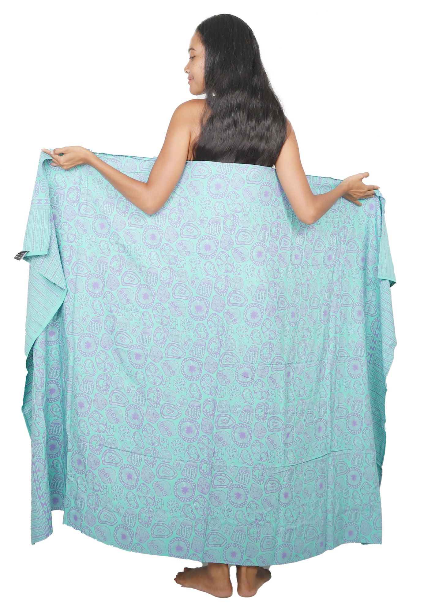 Ce paréo convient aux femmes actives, aux professionnelles du bien-être ou de l’hôtellerie balnéaire souhaitant une pièce simple à enfiler entre deux activités. Sur une journée type, il remplace tour à tour une robe de plage, un paréo de sortie de spa ou un drapé léger pour un déjeuner en terrasse. La boucle en bois aide à garder le paréo bien en place lors des déplacements, sans avoir à refaire le nouage à chaque mouvement, un peu comme une ceinture qui stabilise une tenue fluide.