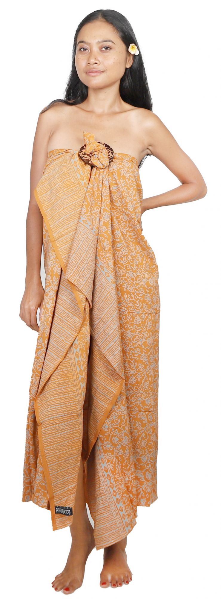 Ce paréo chic pour femme Balifu associe l'élégance des teintes orange papaye à la praticité d'une boucle en bois exotique. Fabriqué à Bali selon les traditions artisanales locales, ce modèle transforme votre tenue de plage en quelques gestes simples.