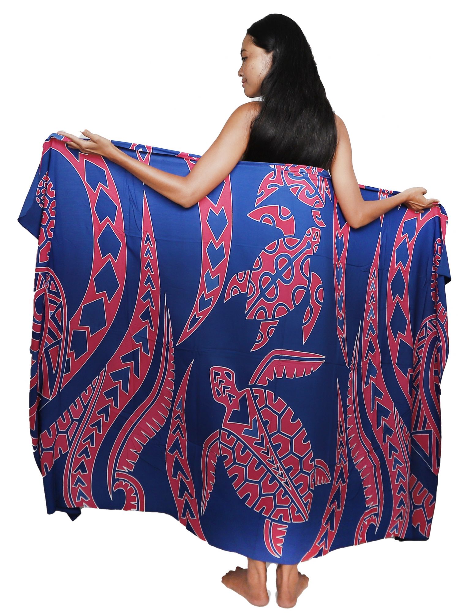 Imaginez-vous étendue sur la plage, ce paréo élégant autour de vous, capturant la lumière du soleil tout en mettant en valeur les détails complexes des motifs polynésiens. Parfait pour les journées au bord de l'eau, il peut aussi embellir votre espace intérieur comme une œuvre d'art textile.