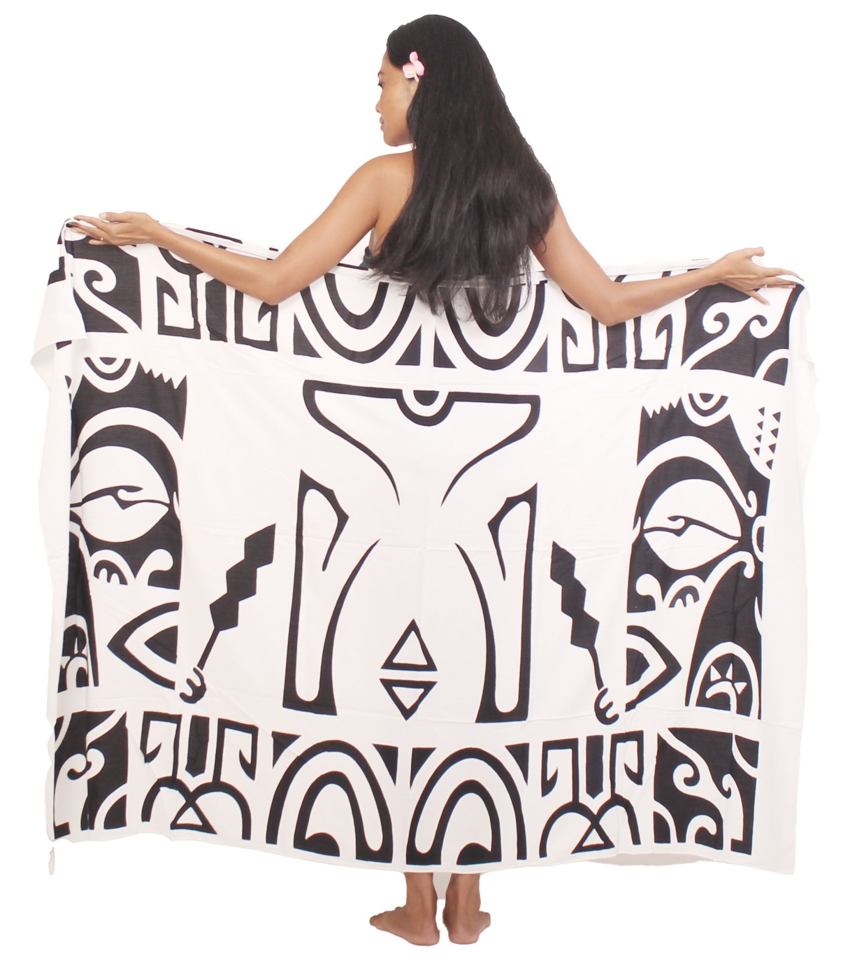Ce grand paréo peint main d'inspiration polynésienne Maori blanc est un nouveau modèle dans notre collection. Vous apprécierez sa douceur, sa résistance et ses couleurs éclatantes. Idéal pour la danse polynésienne.