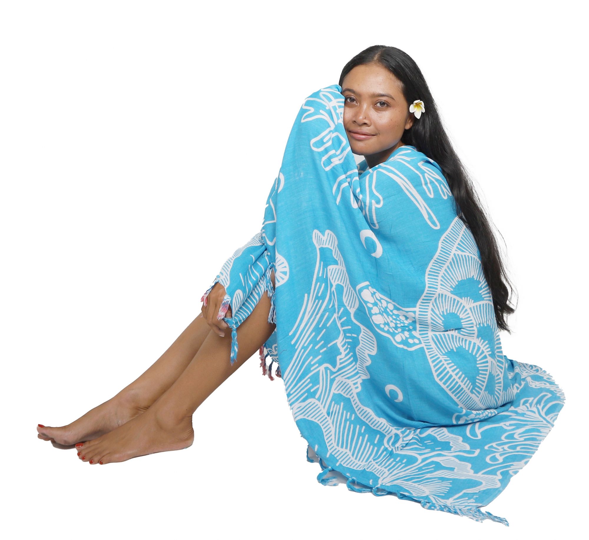 Élaboré en viscose, ce paréo offre une douceur optimale tout en étant résistant. Ses 175 cm x 115 cm permettent une utilisation polyvalente : en jeté de plage, en robe légère ou en foulard. Sa conception à Bali garantit une authenticité et un savoir-faire artisanal. Les motifs bleus et blancs, dominés par une grande tortue, capturent l’esprit marin tout en ajoutant une touche personnelle à votre style.