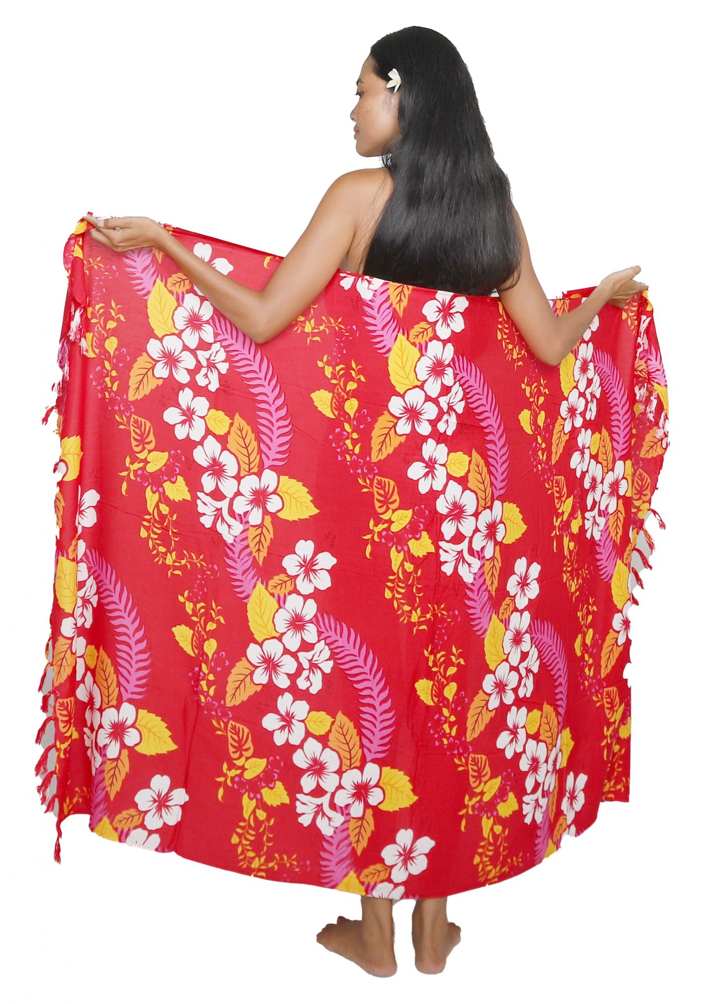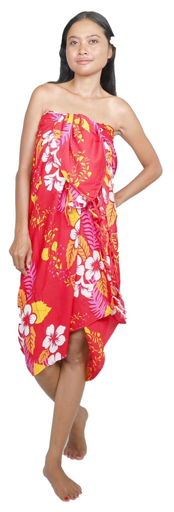 Ce paréo plage motif hibiscus rouge est confectionné en viscose, matière reconnue pour sa douceur et son confort. À la fois robe et jupe, il offre une flexibilité rare : nouez-le autour du cou pour une robe paréo élégante pour femme, ou sur la hanche pour un style décontracté. Les dimensions généreuses permettent une couverture optimale, tout en assurant légèreté et fluidité.