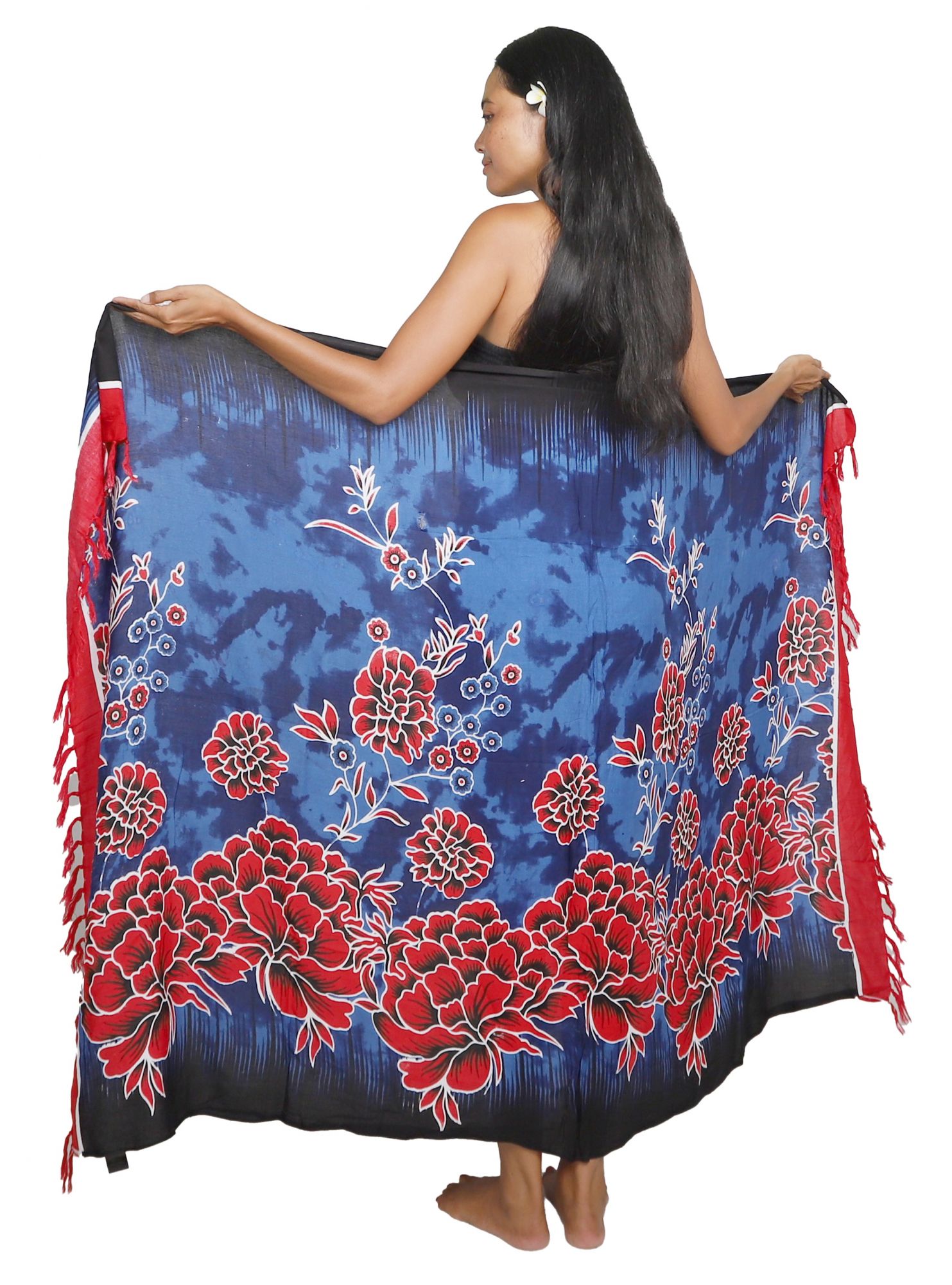 Ce paréo plage élégant pour femme présente un paréo plage motif sakura japonais aux teintes bleu et rouge. Fabriqué artisanalement à Bali, ce modèle associe savoir-faire traditionnel et esthétique contemporaine.