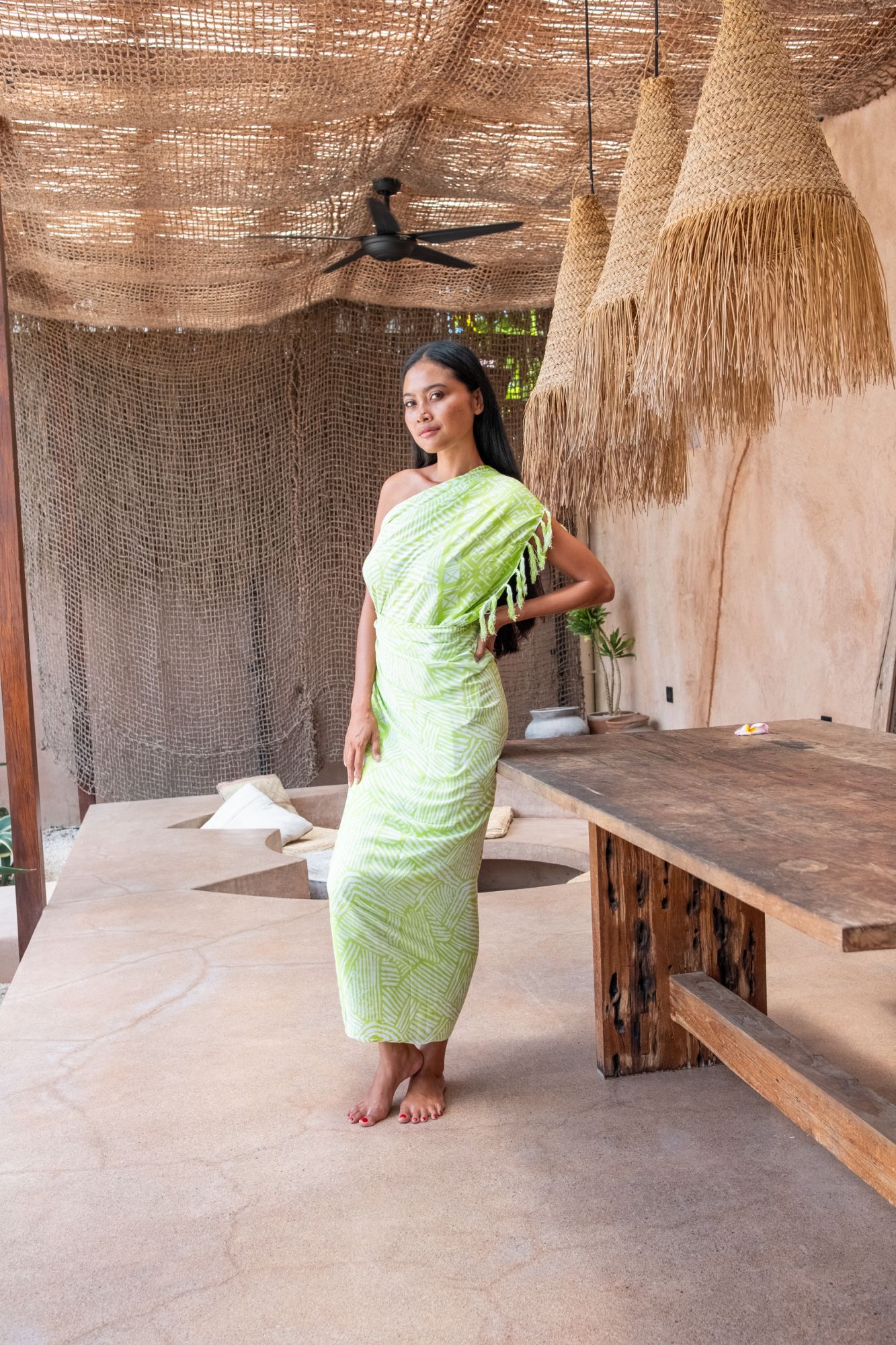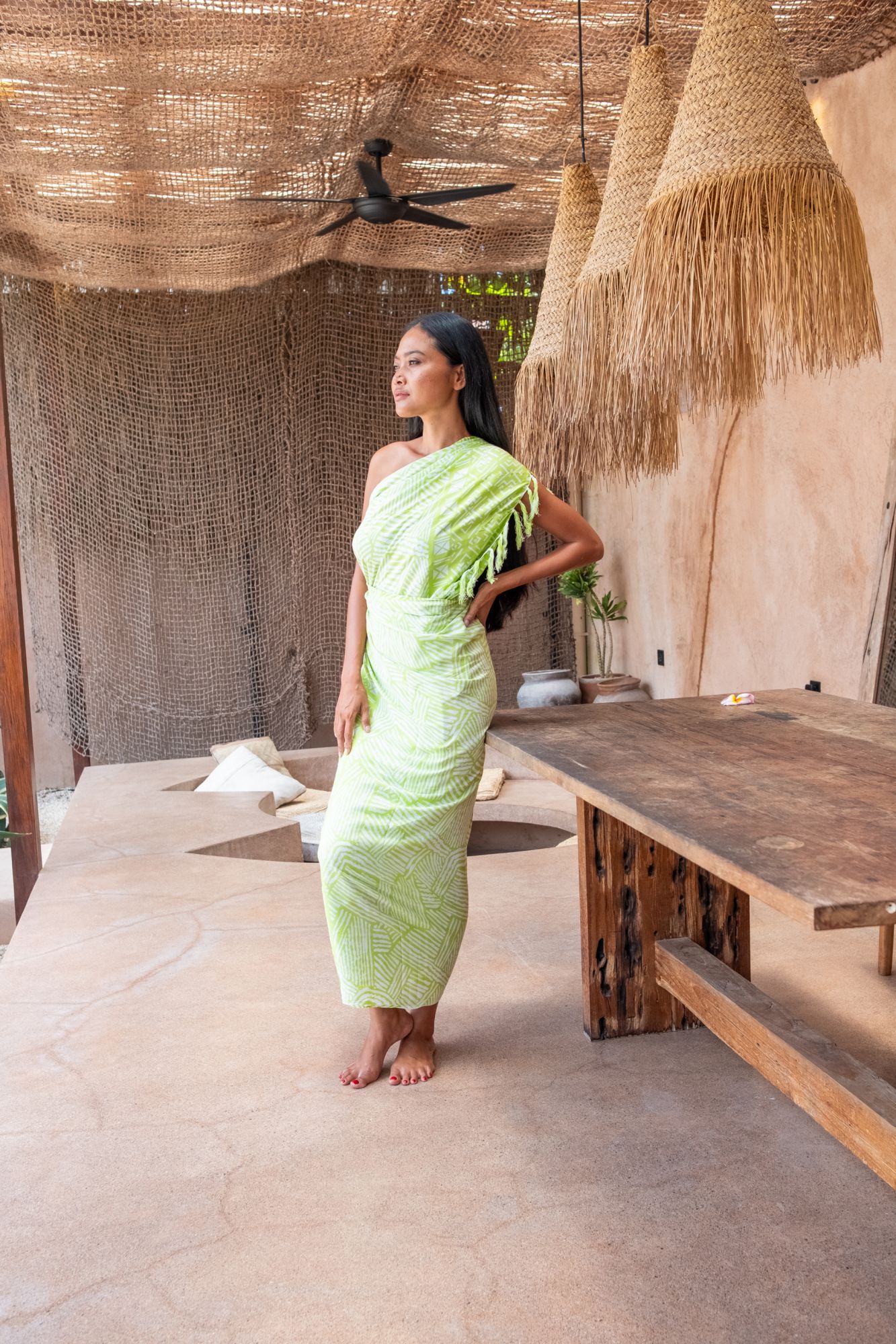 Le paréo plage Kaki Sauvage est confectionné en paréo de plage kaki pour femme avec une viscose qui offre une sensation de douceur comparable au coton. Ses dimensions généreuses de 175 cm x 115 cm vous assurent une couverture ample, idéale pour se détendre ou se protéger du soleil. Les finitions frangées ajoutent une touche décontractée, tandis que la fabrication à Bali souligne notre engagement envers le soutien des artisans locaux.