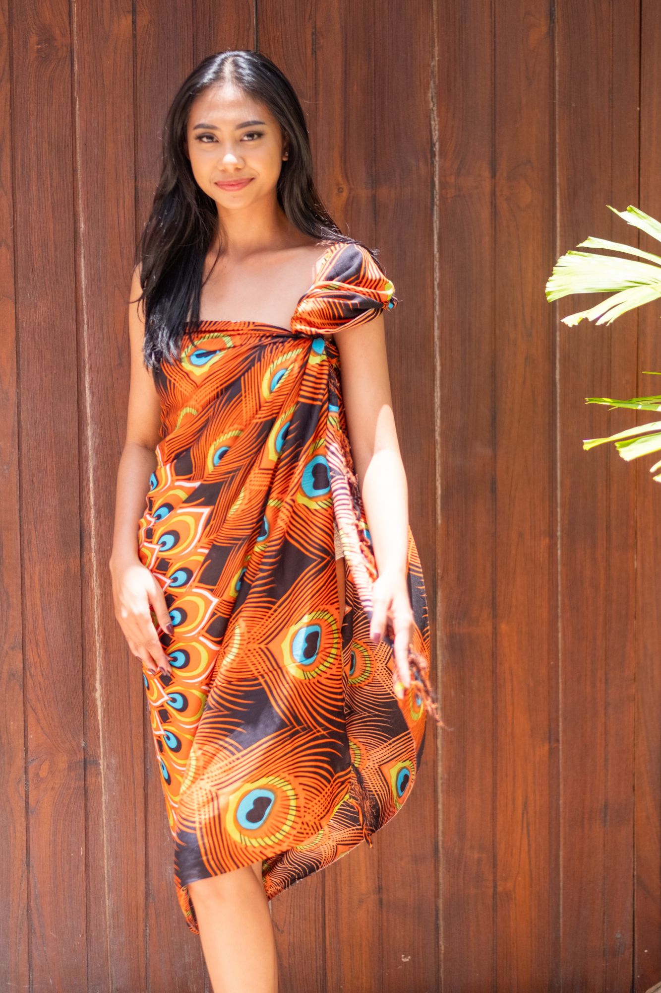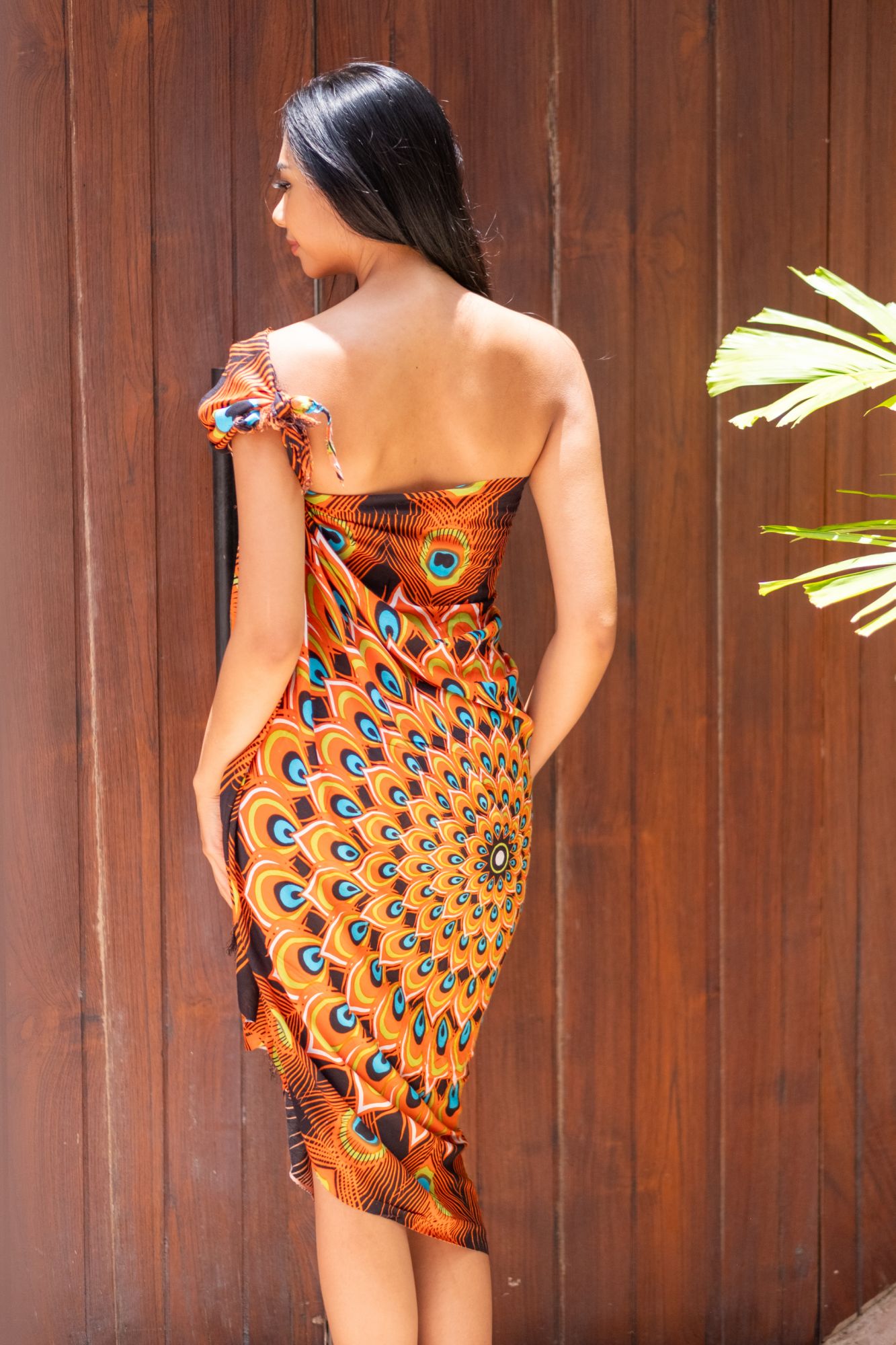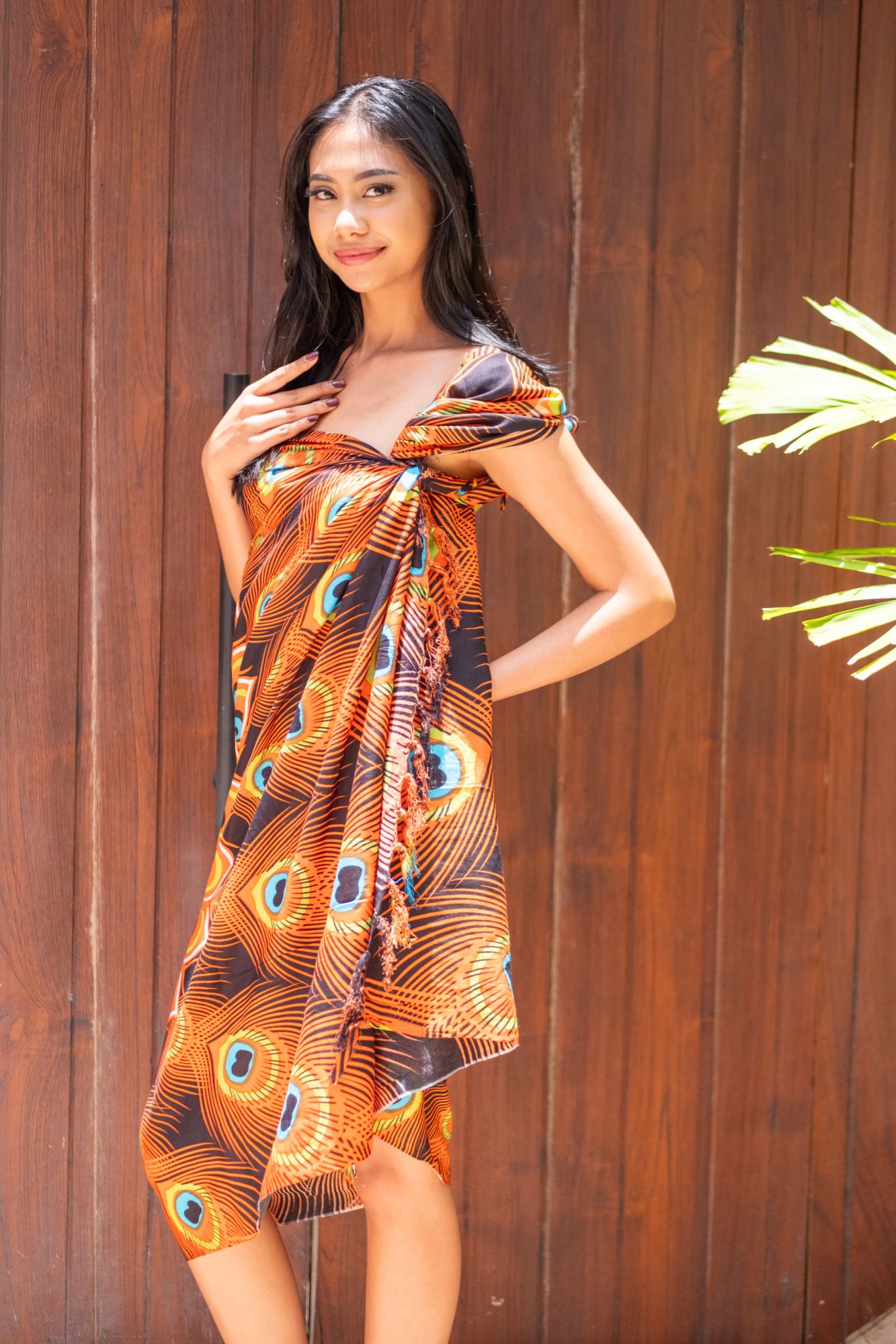 Ce paréo motif queue de paon orange offre une dimension généreuse de 175cm x 115cm, garantissant une couverture optimale. La viscose, matière douce et fluide, procure un confort incomparable tandis que la finition frangée ajoute une touche distinctive. Fabriqué à Bali, cet accessoire respecte les principes du commerce équitable, soutenant les artisans locaux.