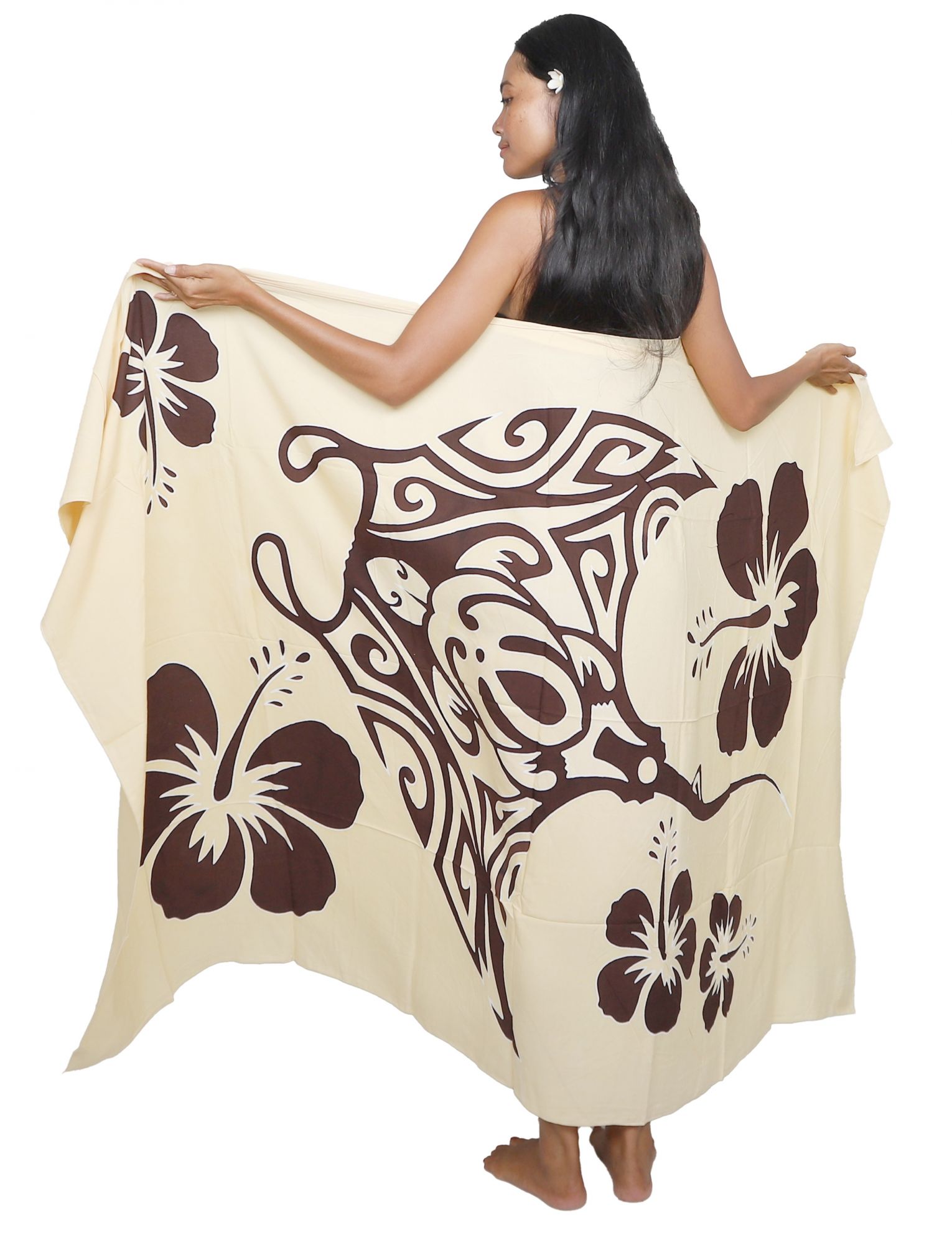 Ce paréo motif raie manta beige et marron capture la majesté de la reine des mers de Polynésie dans un textile d'exception. Fabriqué à Bali selon les traditions artisanales, ce paréo artisanal peint à la main de Tahiti transforme chaque sortie en voyage sensoriel vers les îles du Pacifique.