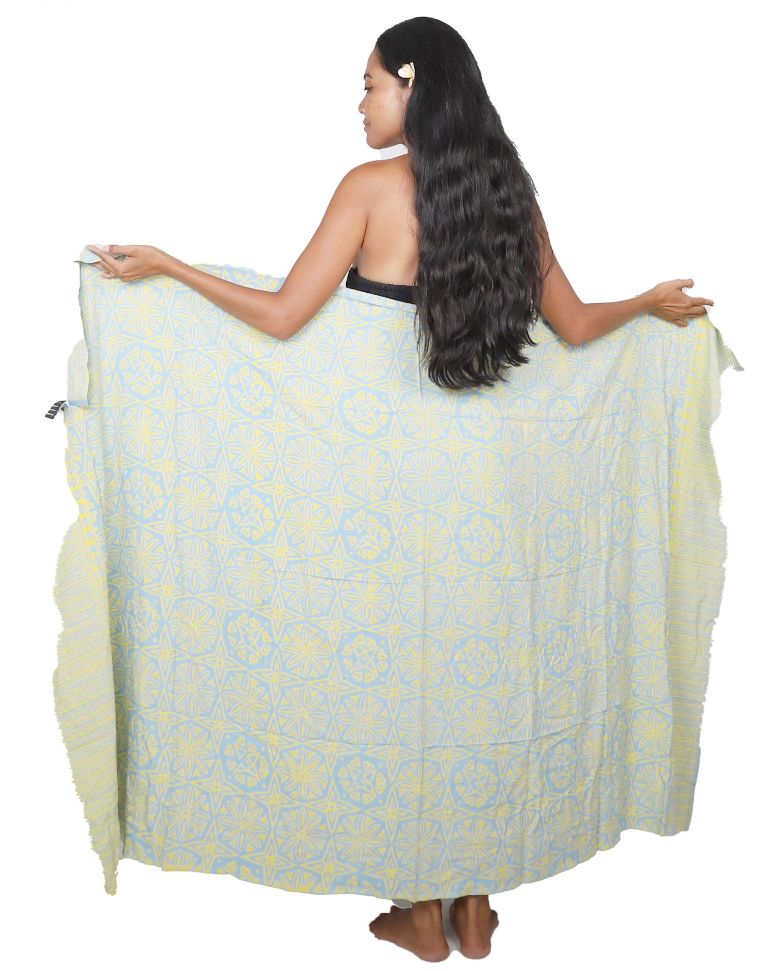 Ce paréo chic pour femme de la marque Balifu transforme vos escapades en instants de luxe grâce à sa conception artisanale balinaise et sa teinte jaune éclatante.