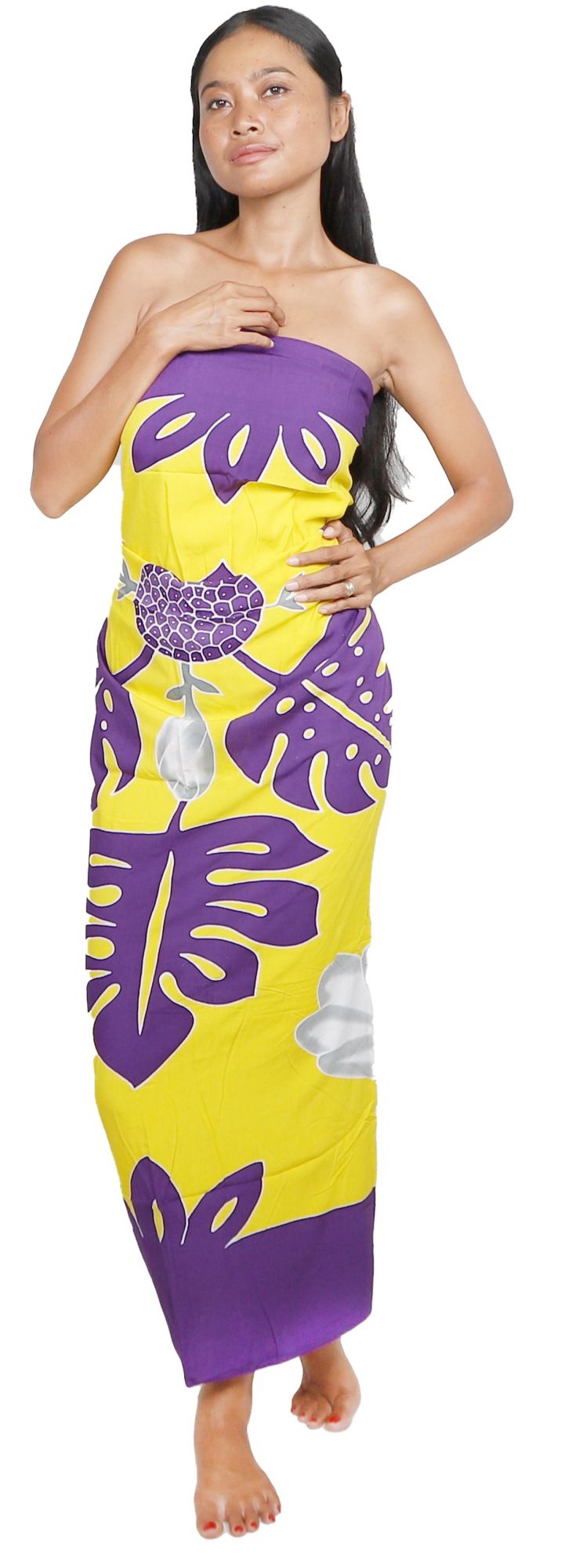Découvrez le paréo motif tifaifai jaune et violet, un chef-d'œuvre de l'artisanat polynésien qui allie style et tradition. Ce paréo, issu de nos meilleures ventes, vous offre une expérience unique, enveloppant votre corps dans une douceur incomparable, grâce à sa matière en viscose, plus soyeuse que le coton.