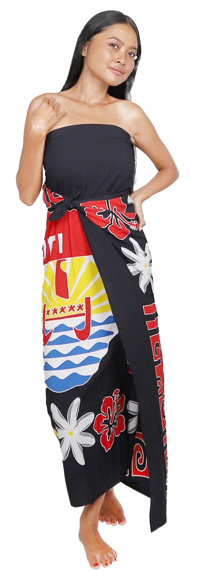 Confectionné dans un tissu de haute qualité, ce paréo présente une résistance optimale aux lavages répétés et aux expositions solaires. Sa grande taille offre une polyvalence d'utilisation appréciable, permettant différentes techniques de nouage selon vos préférences. Le motif représentant Tahiti apporte une dimension culturelle authentique à votre garde-robe estivale.
