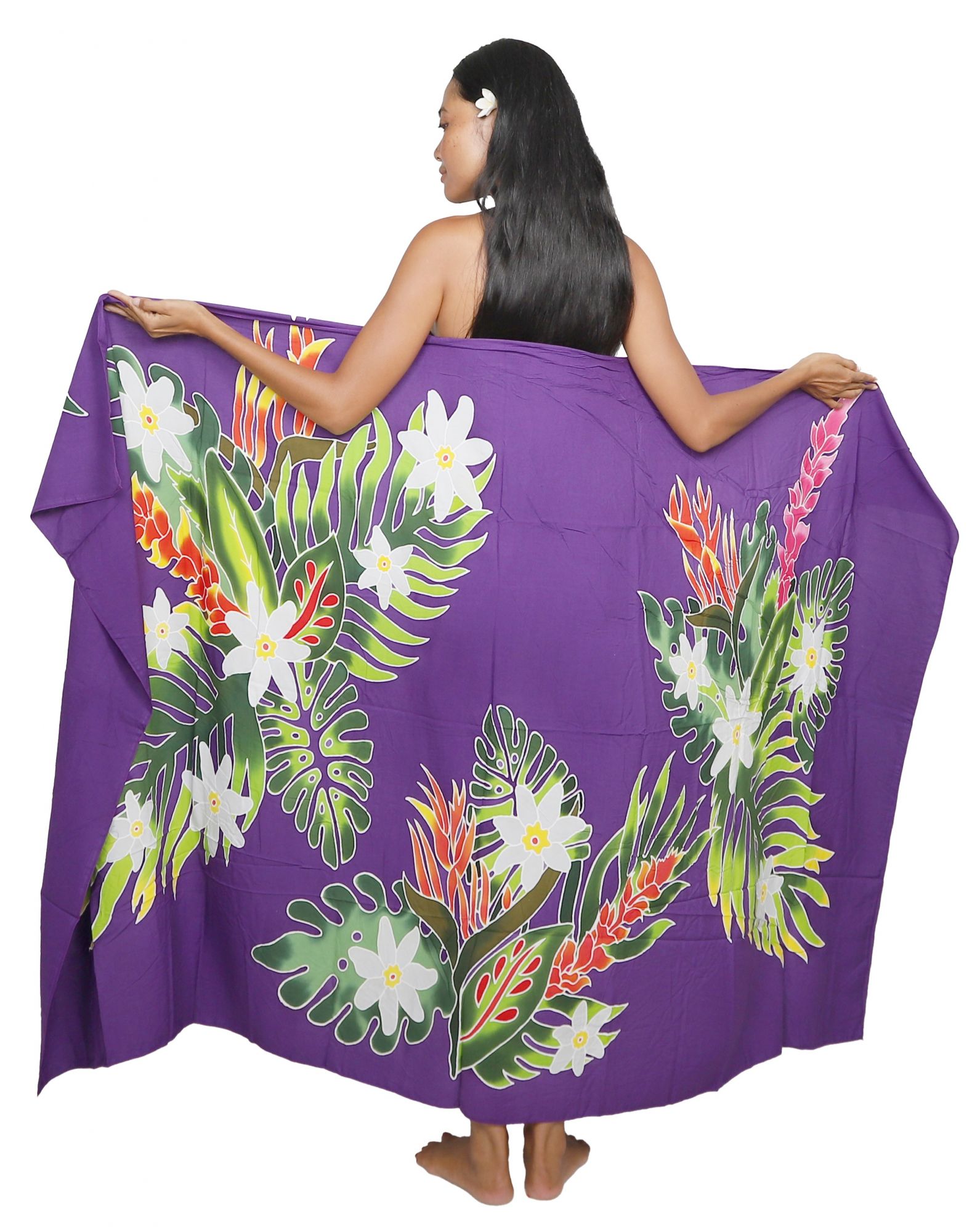 Ce paréo indien violet vous invite à l'évasion avec ses 175 cm x 115 cm de douceur artisanale. Inspiré des paysages tahitiens, il est peint à la main, reflétant un savoir-faire traditionnel engagé pour un commerce équitable.