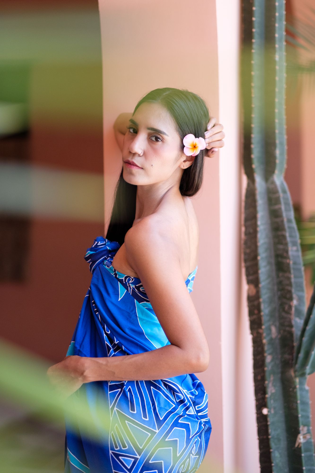 Explorez les détails de ce paréo peint main pour apprécier le savoir-faire artisanal balinais et la qualité des finitions proposées.