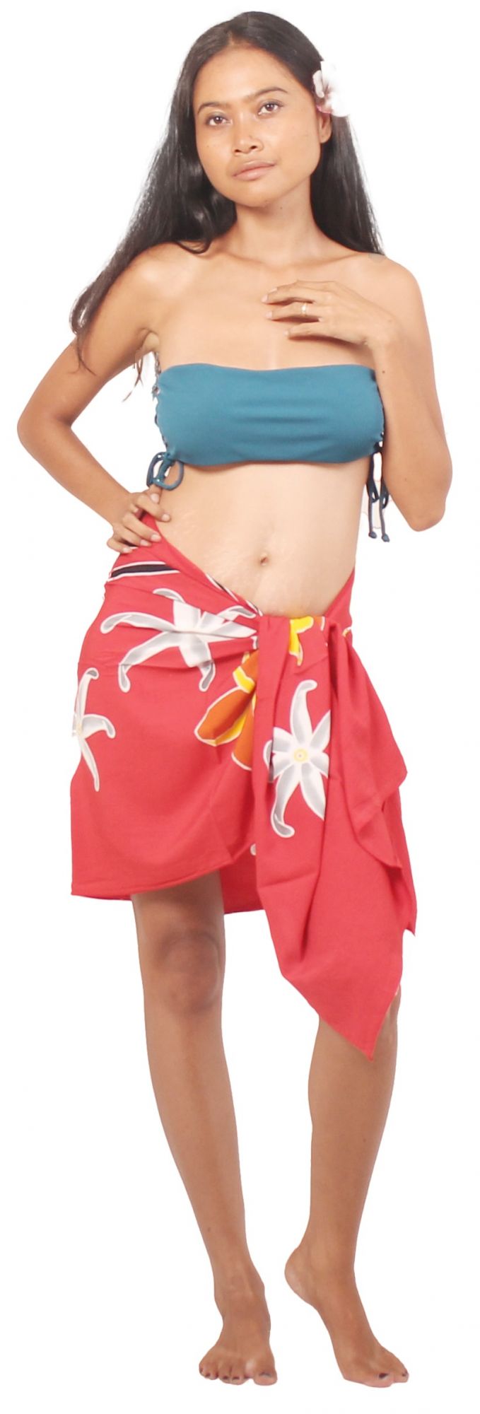 Le Petit Paréo Bora Bora Rouge de "Le Comptoir du Paréo" se révèle être un indispensable pour toutes celles qui souhaitent conjuguer élégance et praticité. Ce paréo, à la teinte rouge éclatant agrémentée de motifs floraux blancs, jaunes et oranges, est une véritable invitation à la détente en bord de mer.