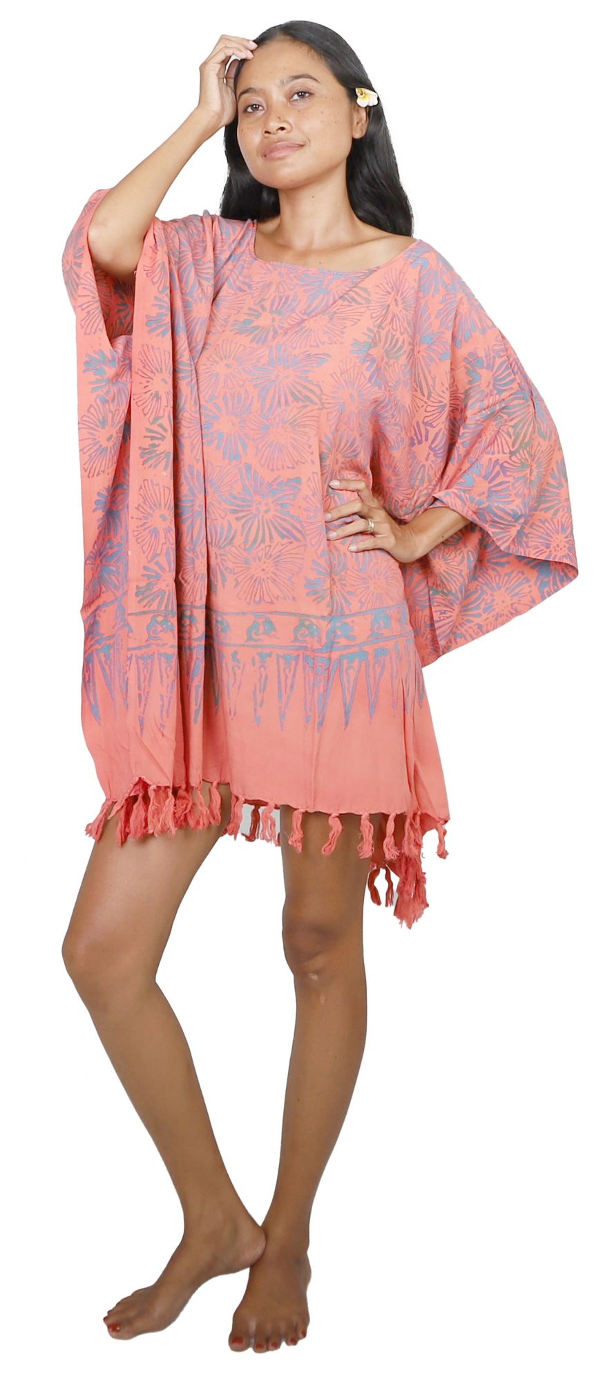 La coupe poncho en taille unique simplifie l’usage au quotidien : vous l’enfilez sans ajustements complexes, un peu comme une tunique de plage pensée pour bouger librement. La viscose apporte un tombé fluide, utile lorsque l’on recherche une tenue légère pour les journées chaudes ou les moments de détente. Le batik, réalisé à Bali, structure visuellement la pièce avec un motif floral lisible, sans surcharge, tandis que la finition frangée marque l’ourlet et aide à définir la silhouette. Pour une recherche ciblée, cette pièce correspond à une robe paréo batik Amed rose destinée aux usages balnéaires et estivaux.