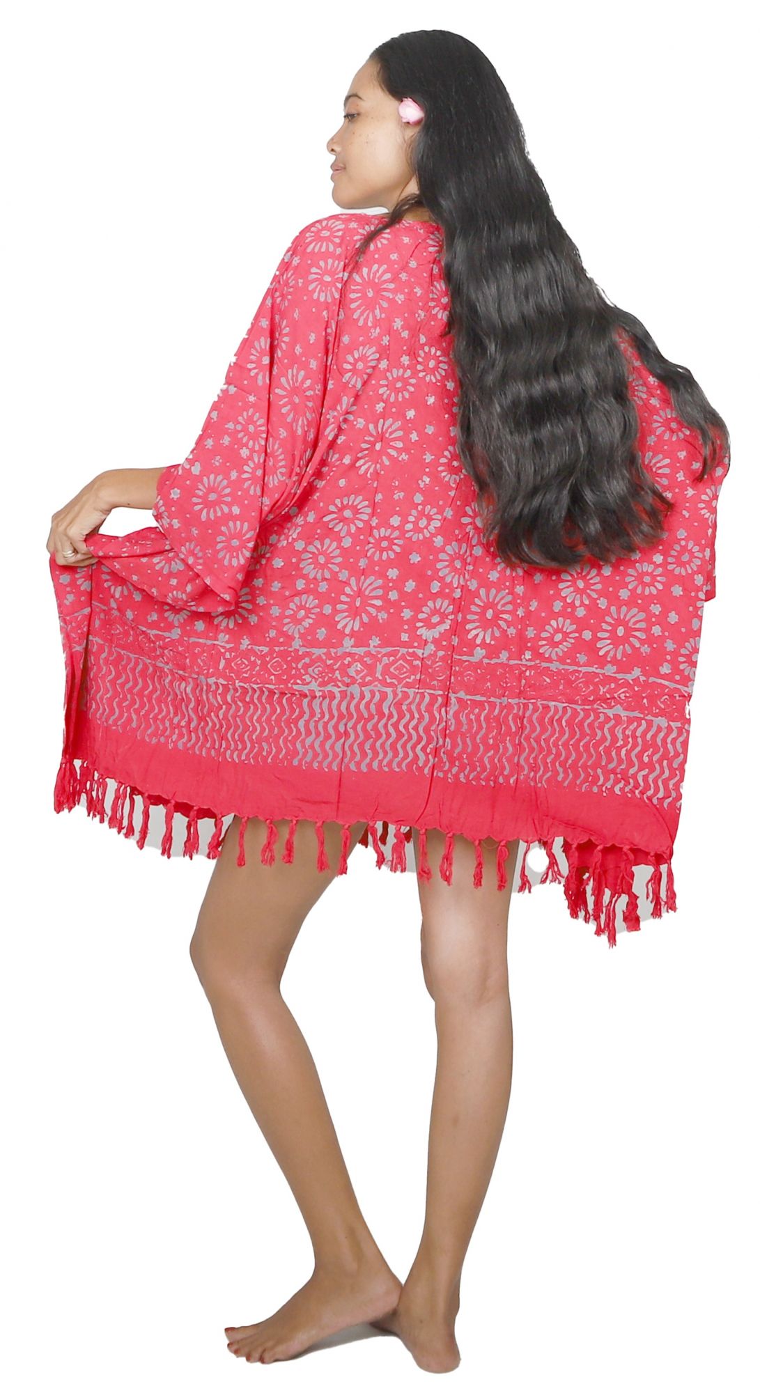 Avec sa coupe poncho ample et son imprimé batik bicolore, la Robe batik rayon tropicale rouge propose une tenue d’été simple à enfiler, pensée pour circuler entre plage, terrasse et intérieur sans changer de rythme.